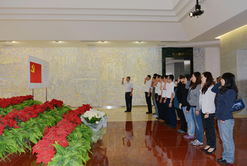 全體黨員、申請(qǐng)人參觀革命先驅(qū)李大釗紀(jì)念館,重溫了中國(guó)革命的偉大先驅(qū)李大釗同志尋求救國(guó)真理、傳播新文化、宣傳馬列主義、創(chuàng)建中國(guó)共產(chǎn)黨、領(lǐng)導(dǎo)北方工農(nóng)運(yùn)動(dòng)、促成國(guó)共合作、在白色恐怖下堅(jiān)持斗爭(zhēng)、最后為共產(chǎn)主義事業(yè)英勇就義的生平業(yè)績(jī)和他“鐵肩擔(dān)道義、妙手著文章”的風(fēng)范,深受教育和啟迪。黨員代表向李大釗同志的雕像敬獻(xiàn)了花籃,公司12名新黨員在李大釗雕像前進(jìn)行了莊嚴(yán)的入黨宣誓。