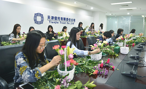 近日,為慶祝三八國(guó)際勞動(dòng)?jì)D女節(jié),豐富女員工生活,天津信托工會(huì)組織了“天信女神花藝課堂”插花活動(dòng)。