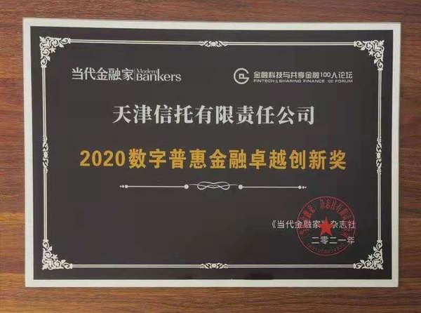 5月20日,天津信托憑借“零小貸”業(yè)務(wù)在普惠金融領(lǐng)域做出的卓越成績,在“2020年度中國金融科技競爭力卓越榜”評選活動中,喜獲“2020數(shù)字普惠金融卓越創(chuàng)新獎”。 “零小貸”業(yè)務(wù)作為落實國家政策指導(dǎo)要求和踐行企業(yè)社會責(zé)任的重點工作,得到公司領(lǐng)導(dǎo)大力支持。普惠金融部與信息技術(shù)部通力協(xié)作,推進“零小貸”經(jīng)營性小微貸款產(chǎn)品,加強對中小微企業(yè)的金融支持。