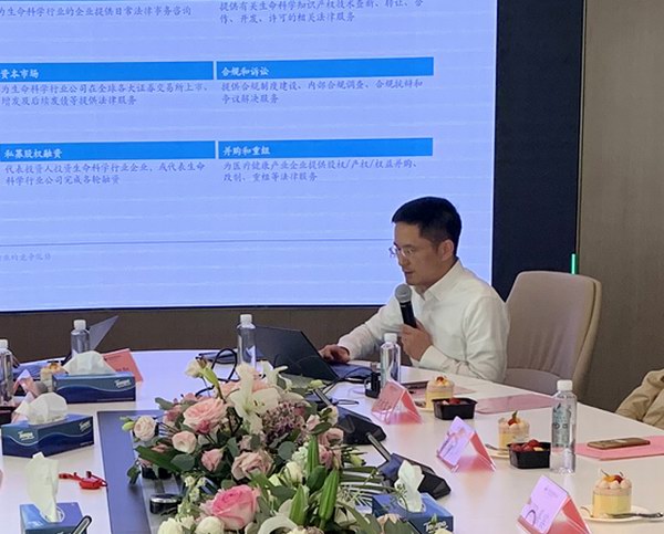 此次活動,還特別邀請了競天公誠胡志強律師作為嘉賓來到現(xiàn)場,分享生物醫(yī)藥企業(yè)上市過程中法律領(lǐng)域的經(jīng)驗,詳細(xì)解說了生物醫(yī)藥公司上市的基本要求、審核標(biāo)準(zhǔn)以及解決辦法,幫助到場企業(yè)嘉賓提升對上市流程的認(rèn)知。