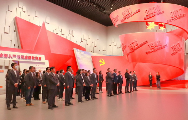 參觀學(xué)習(xí)結(jié)束前,公司黨委書記、董事長周雄同志帶領(lǐng)全體黨員干部面向黨旗,重溫入黨誓詞莊嚴(yán)宣誓,堅定入黨初心使命,扛起主責(zé)主業(yè)。此次集體參觀學(xué)習(xí)既是一堂生動的紀(jì)律教育黨課,更是一次以案說德、以案說紀(jì)、以案說法、以案說責(zé)的深刻警示教育,大家表示要深入貫徹落實集團警示教育大會精神,聯(lián)系公司實際認(rèn)真組織開展黨紀(jì)學(xué)習(xí)教育活動,在行業(yè)轉(zhuǎn)型中用黨紀(jì)黨規(guī)校正思想行動,正心明志,自警自勵,擔(dān)當(dāng)有為,爭做推進(jìn)公司轉(zhuǎn)型發(fā)展的施工員、建設(shè)者。