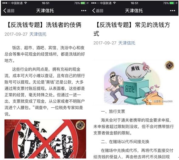 按照人民銀行天津分行的相關(guān)文件精神,2017年10月,天津信托組織開展了宣傳主題為“遏制洗錢犯罪,維護(hù)穩(wěn)定發(fā)展”的反洗錢主題宣傳活動。本次活動從普及反洗錢知識、保護(hù)自身安全、防范洗錢風(fēng)險等幾個方面向客戶及公眾進(jìn)行宣傳教育,提高公眾的反洗錢意識,引導(dǎo)公眾支持反洗錢工作,履行公司的反洗錢義務(wù)。