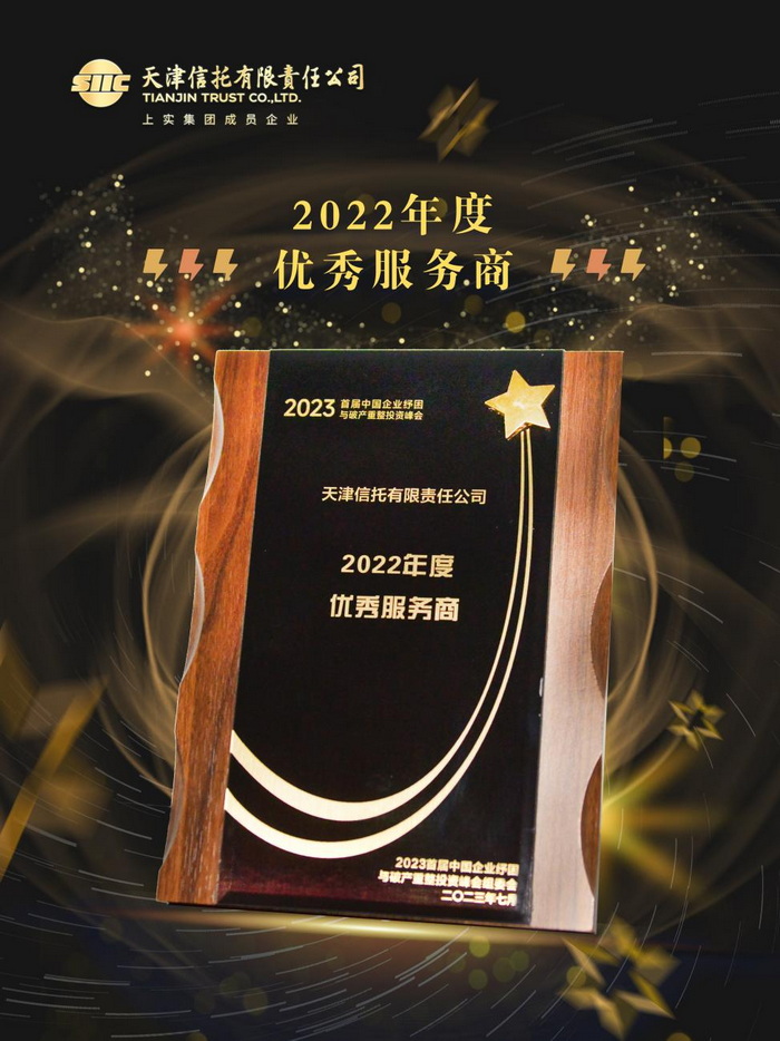 2023年7月22日-23日,由全國工商聯(lián)并購公會與資產(chǎn)界聯(lián)合主辦的“2023首屆中國企業(yè)紓困與破產(chǎn)重整投資峰會暨‘破曉獎’頒獎典禮”在上海成功舉行,與會嘉賓包括企業(yè)紓困與破產(chǎn)重整服務領域極具影響力機構和業(yè)界領軍人物等。天津信托憑借近年在企業(yè)市場化重組服務信托和企業(yè)破產(chǎn)服務信托方面的卓越表現(xiàn)和創(chuàng)新能力,榮獲破曉獎“2022年度優(yōu)秀服務商”獎項。