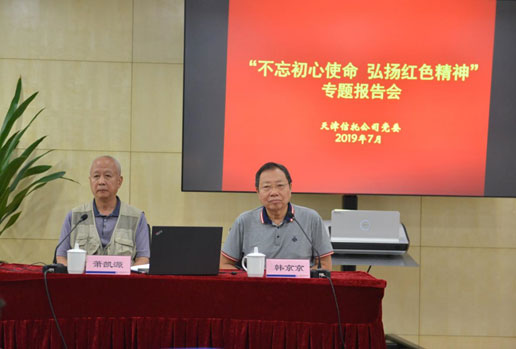 7月23日上午,天津信托公司黨委召開“不忘初心使命、弘揚(yáng)紅色精神”專題報(bào)告會。邀請開國少將原紅軍一軍團(tuán)1師1團(tuán)偵察參謀蕭思明將軍之子蕭凱源同志,和開國中將、原紅軍5軍團(tuán)34師100團(tuán)團(tuán)長韓偉將軍之子韓京京同志來到公司為全體黨員、員工做“不忘初心使命,弘揚(yáng)紅色精神”專題報(bào)告。